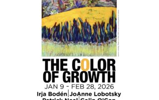 The Color of Growth brings together four artists whose work reimagines nature and landscape as dynamic sites of transformation. Opening on Friday, January 9, and featuring the work of artists Irja Boden, JoAnne Lobotsky, Patrick Neal, and Colin O’Con, The Color of Growth invites viewers to look beyond seasonal dormancy and consider growth as an ongoing, layered process – “one that persists beneath the surface, even when unseen.”