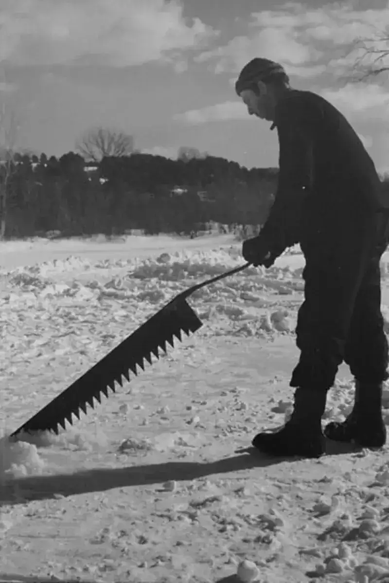 A profession for the feeble, most assuredly this was not. For all involved, commercial ice harvesting requires strength, a sturdy constitution, and keeping your wits about you. Top of mind: You don’t want to wind up in the drink and become an instant human popsicle.