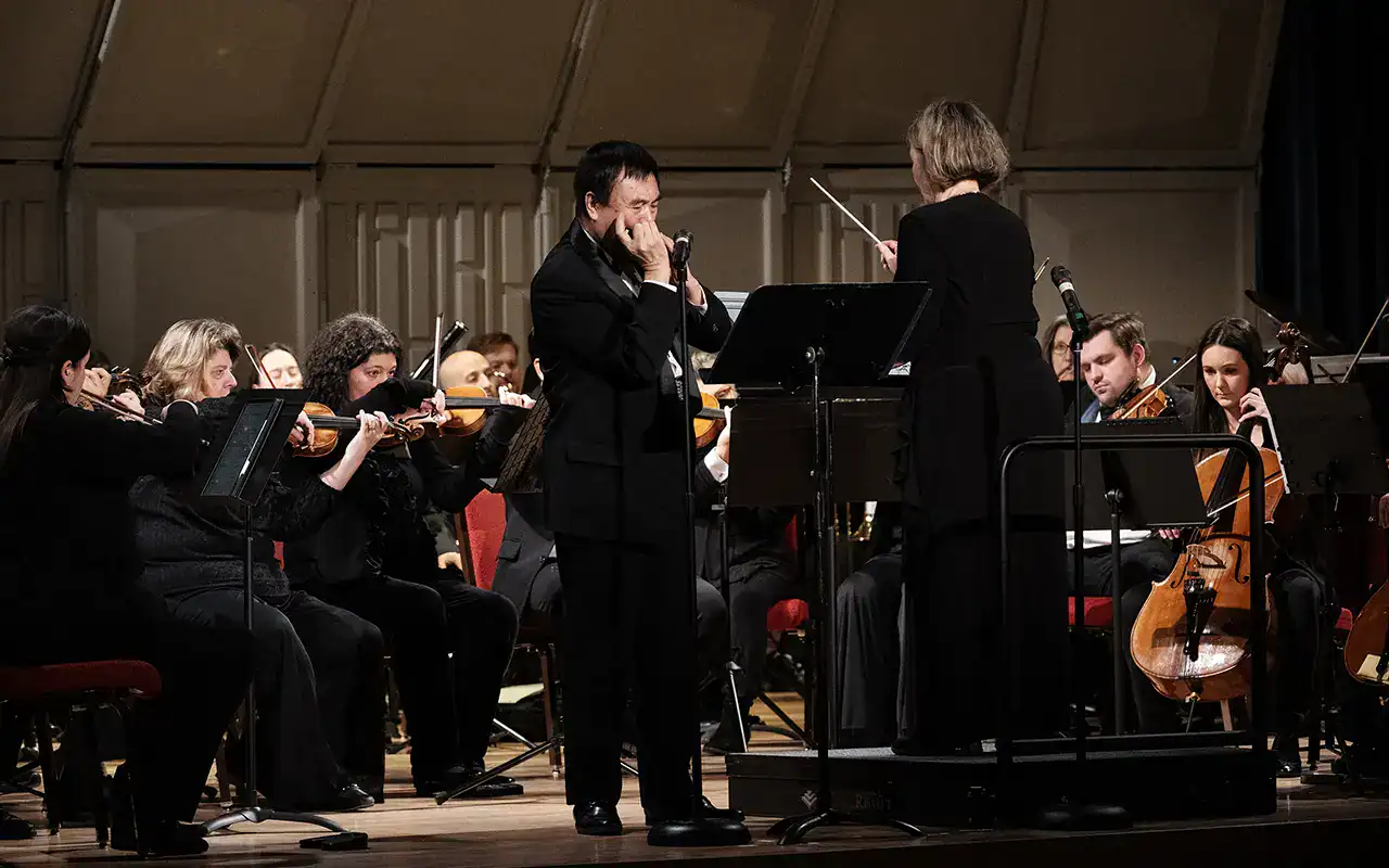 What was on the program for “Epic Movie Scores”? Arrangements from Back to the Future, Forrest Gump, The Great Escape, and Dances with Wolves, among others, concluding with a medley from James Bond movies. The audience was treated to the featured performers Jiayi He on harmonica of all things, and violinist Marka Young.
