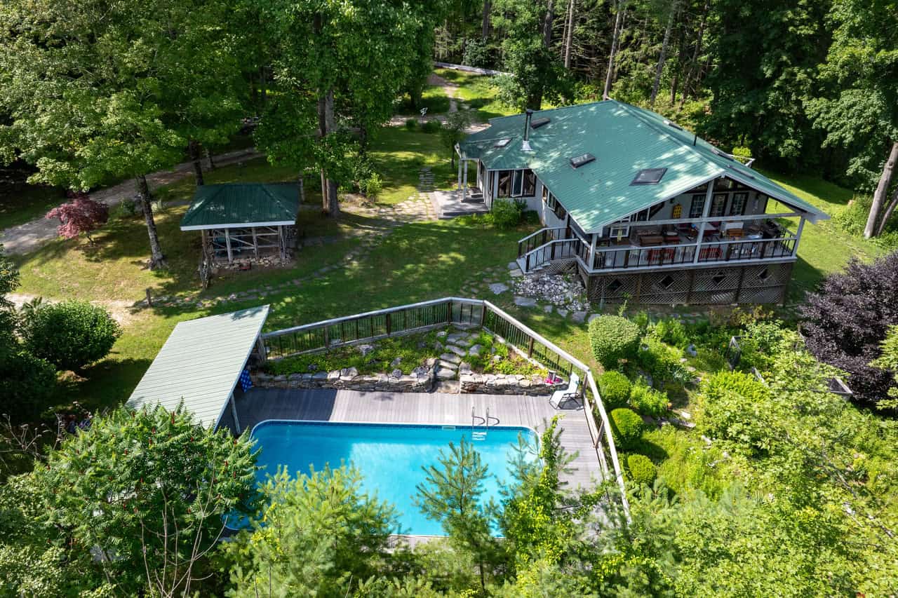 Lake Access, 3+ acres, in-ground Pool, and room for expansion! Tucked away on a private road with shared lake access to the serene waters of Lake Washinee, this custom one-level home with room for expansion, offers the perfect blend of natural beauty, thoughtful design, and modern comfort. Set on just over three wooded acres with a tranquil stream, the property offers privacy and peaceful surroundings in every direction. The original home was built in 1950. There was a complete renovation and additions to the home in 2003, enlarging the home significantly. Step inside to discover vaulted ceilings, hardwood floors, and skylights that flood the home with natural light. The spacious primary suite is a true retreat, featuring a large bedroom with a distinctive triangular balcony, large bathroom with a hot tub and walk-in shower, a walk-in closet, and a convenient laundry room-all on the main level. Designed with indoor-outdoor living in mind, the home boasts a large covered deck perfect for entertaining or relaxing in any season. Just steps away, an inground pool with its own covered lounge area invites summer enjoyment. The lower level includes a private bedroom with half bath and its own entrance-ideal for guests, a home office, or rental potential. A walk-out basement and one-car garage offer additional storage and the opportunity to expand your living space.